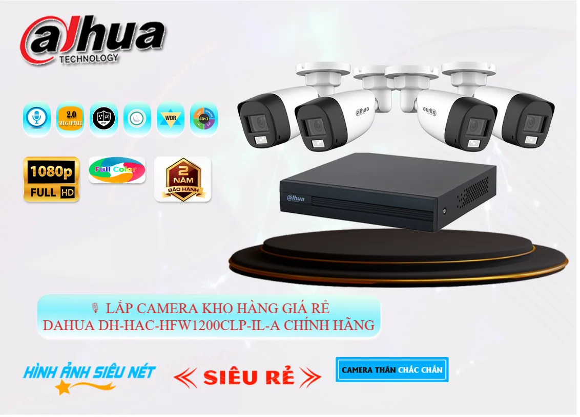 - Camera quan sát an ninh giá rẻ DH-HAC-HFW1200CLP-IL-A , số lượng 4 cái