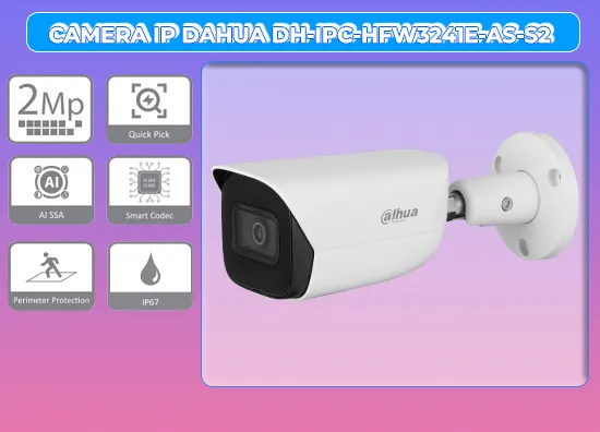 Camera IP Thân Dahua DH-IPC-HFW3241E-AS-S2 là lựa chọn lý tưởng để lắp đặt hệ thống camera chống trộm hiệu quả cho ngôi nhà hoặc cửa hàng của bạn. Với thiết kế chắc chắn và khả năng chống nước camera có thể hoạt động ổn định trong mọi điều kiện thời tiết.