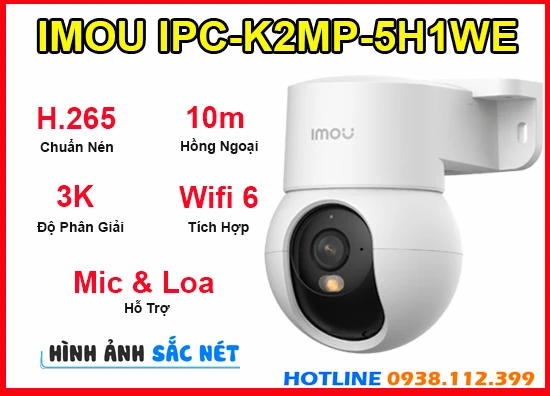 🤙 Camera IP WIFI IPC-K2MP-5H1WE Imou có khả năng quay quét toàn cảnh, độ phân giải 5MP, chế độ ánh sáng thông minh, phát hiện chuyển động và con người, đàm thoại 2 chiều, Smart Tracking, lưu trữ thẻ nhớ lên đến 512GB, hỗ trợ Wi-Fi 6, LAN, CLOUD và ONVIF